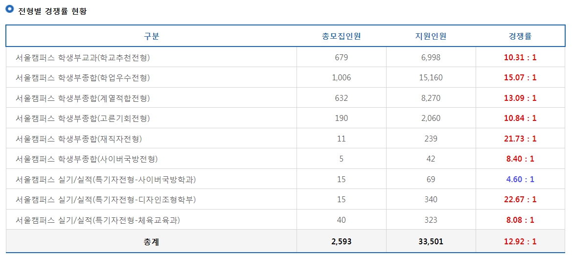 자세한 전형세부 경쟁률은 유웨이 어플라이에서 확인이 가능합니다.