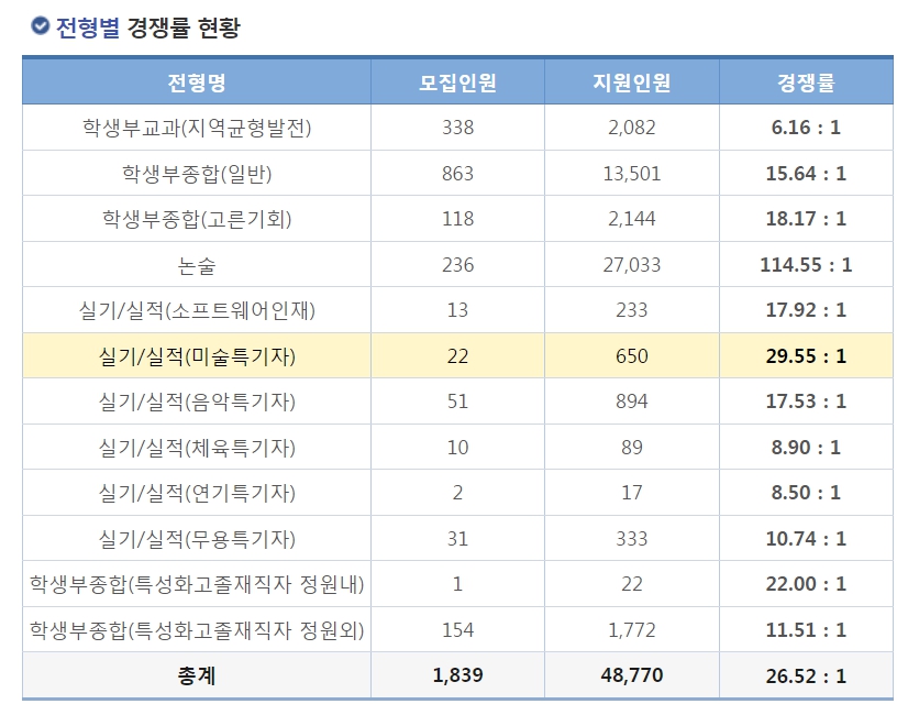 전형별 경쟁률 현황을 확인해 보겠습니다.