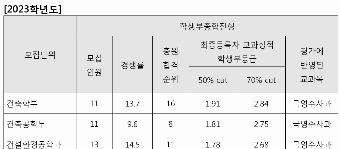 2023 수시 등급컷