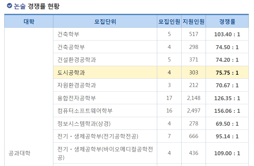 예를 들어 논술 경쟁률을 확인하면 다음과 같습니다.